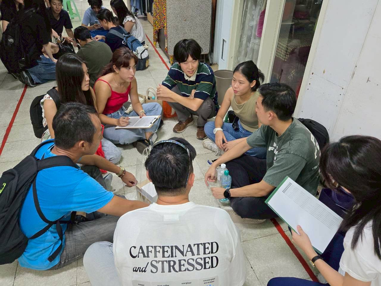 學期中,新加坡師生亦於 2025年10月3日來台交流,與「移民工研究實作」師生一同走讀台北小馬尼拉。師生一行三十人從捷運圓山站出發,走訪周邊的MAJI SQUARE、聖多福天主教堂、台北印菲商行、EEC 東南亞商店及金萬萬名品城等地。由於國際學生背景眾多,走讀過程中亦邀請不同學生分享,例如:墨西哥籍學生分享了MAJI SQUARE的在地店家;越南籍學生介紹了越南移民工社群在台灣較為少數的天主教信仰等。過程中,兩校師生亦於東南亞商店內外展開跨國交流,除分享店內具代表性的商品外,也進一步分享台灣與新加坡移民工非政府組織的運作情形。行程尾聲,兩校學生於金萬萬名品城席地而坐,透過學習單記錄走讀過程中的所見所聞,並與同儕共同釐清政策比較的切入方向。兩校教師亦加入討論並提供回饋建議,師生互動熱絡。