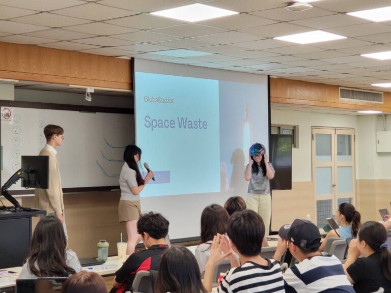 In this Round-Table Project, students demonstrated strong critical thinking and global awareness. Group 7 focused on space debris governance, highlighting that orbital waste has already threatened global communication and space security. The group also pointed out that disparities in national technological development have created another form of inequality, and called for the establishment of binding international regulations that recognize outer space as “a common asset of humankind.”