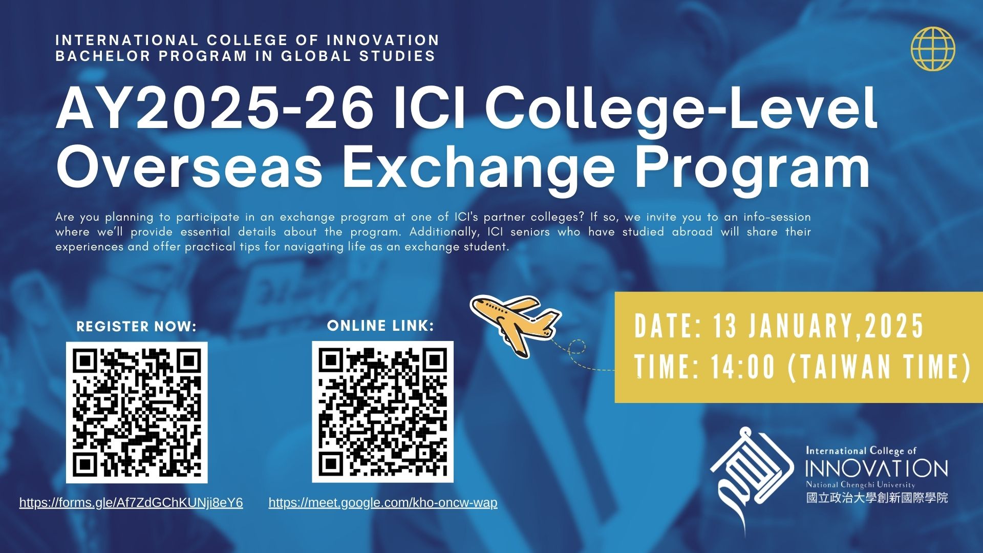 Are you planning to participate in an exchange program at one of ICI’s partner colleges? We sincerely invite you to join this online information session to gain a comprehensive understanding of the exchange program. This session will feature alumni who have participated in exchange programs, sharing their valuable experiences and offering practical advice to address any concerns you may have before studying abroad. Additionally, we will provide a detailed explanation of the key application procedures to help you prepare effectively.