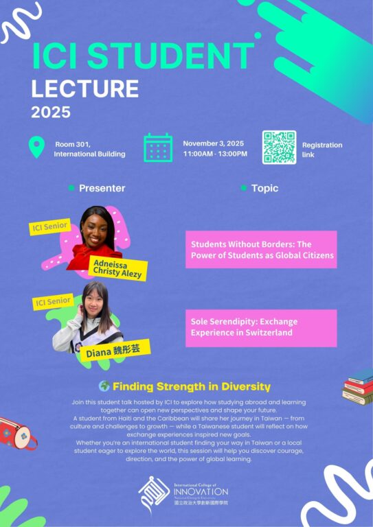 誠摯邀請你一起聆聽兩位 ICI 大四學生的分享——她們將帶來跨國挑戰、創造在地與全球影響力的精彩故事!💫