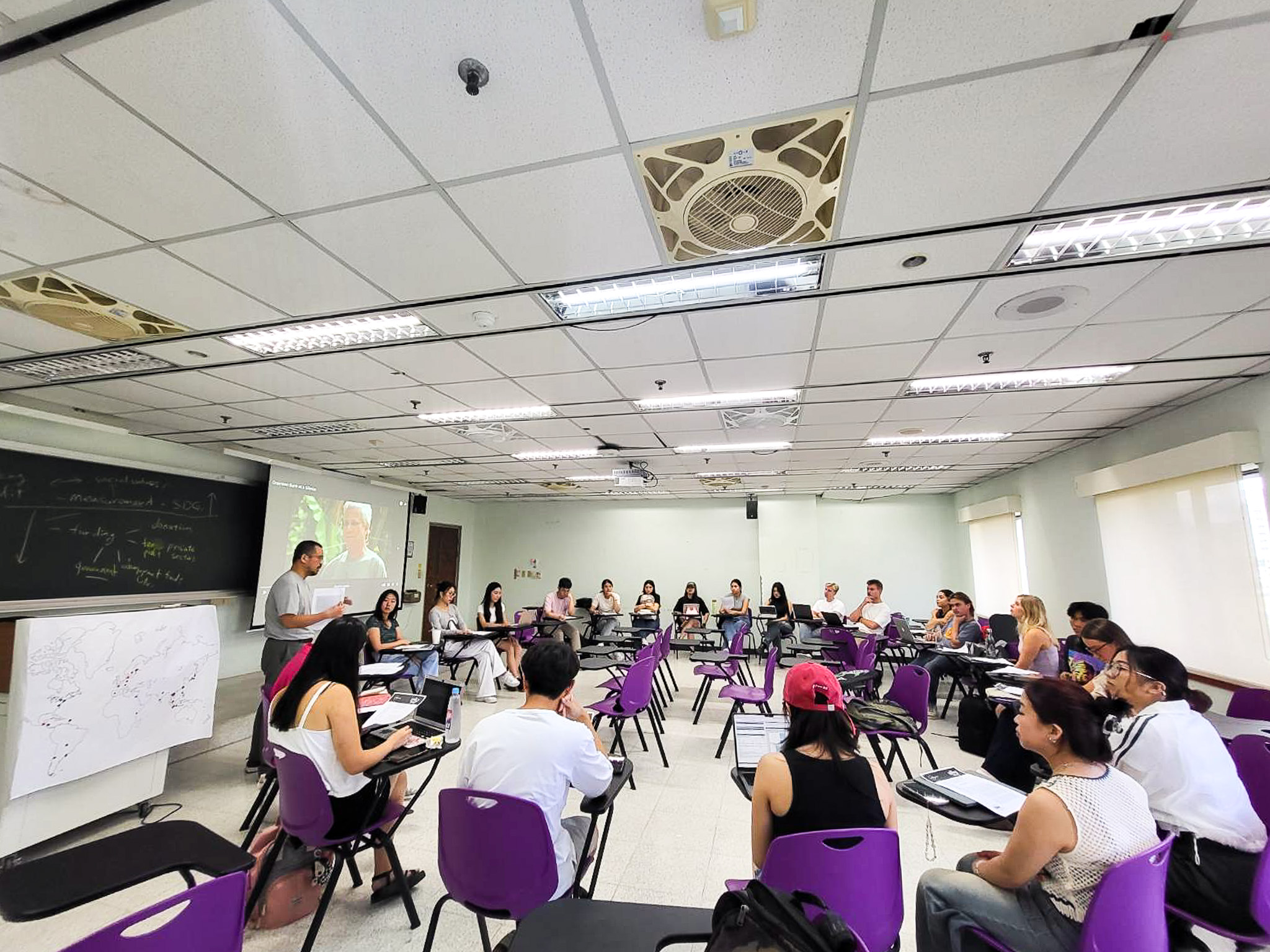 江順楠助理教授於課程中與學生們互動(照片來源:創新國際學院)