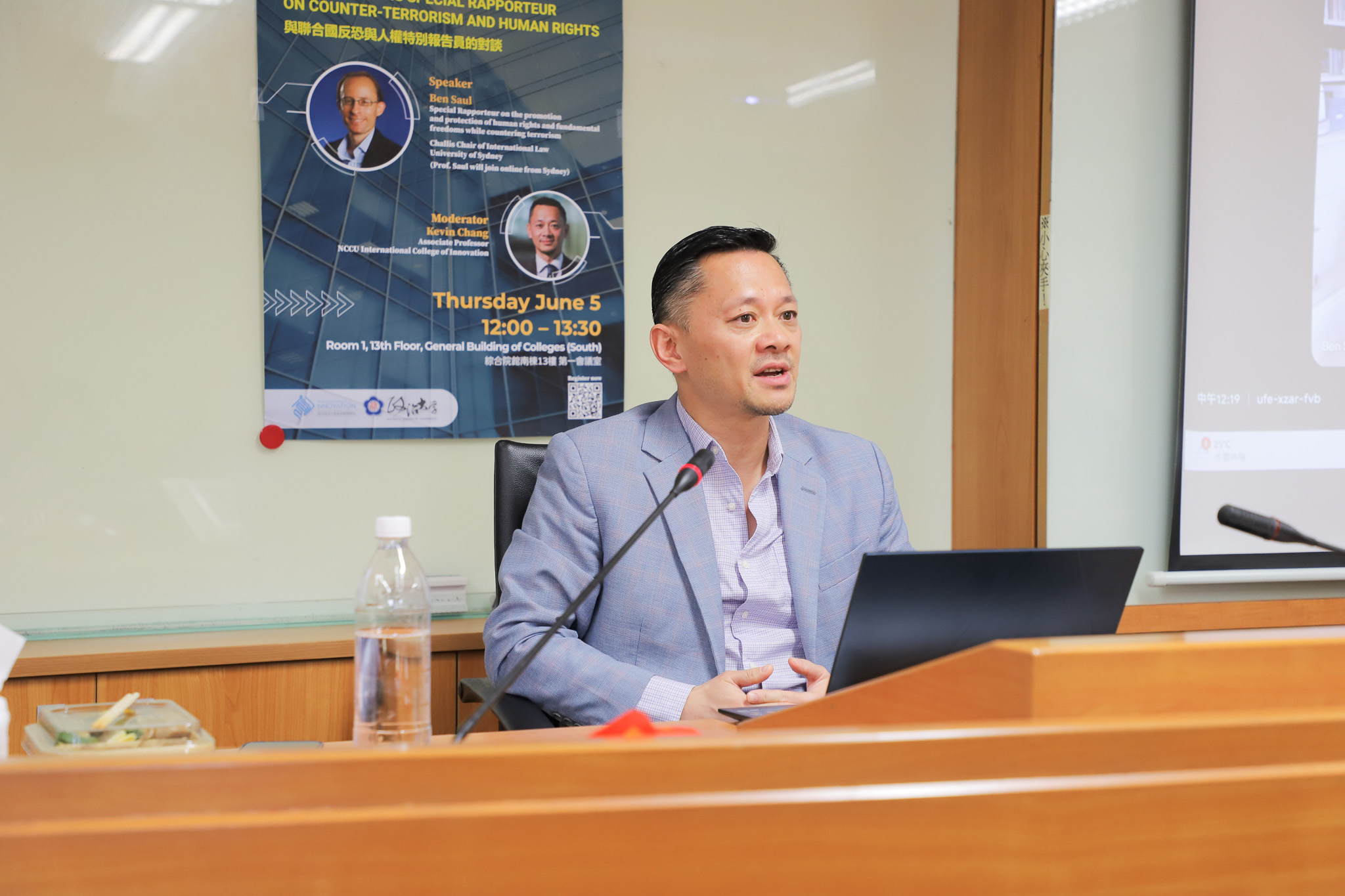 政治大學創新國際學院於 6 月 5 日舉辦專題講座,邀請聯合國反恐與人權問題特別報告員暨雪梨大學國際法教授 Ben Saul,透過線上連線方式,與臺灣師生進行一場深入對談。講座由創新國際學院張佳康副教授主持,吸引國際法、人權與政治領域師生與實務人士熱烈參與。