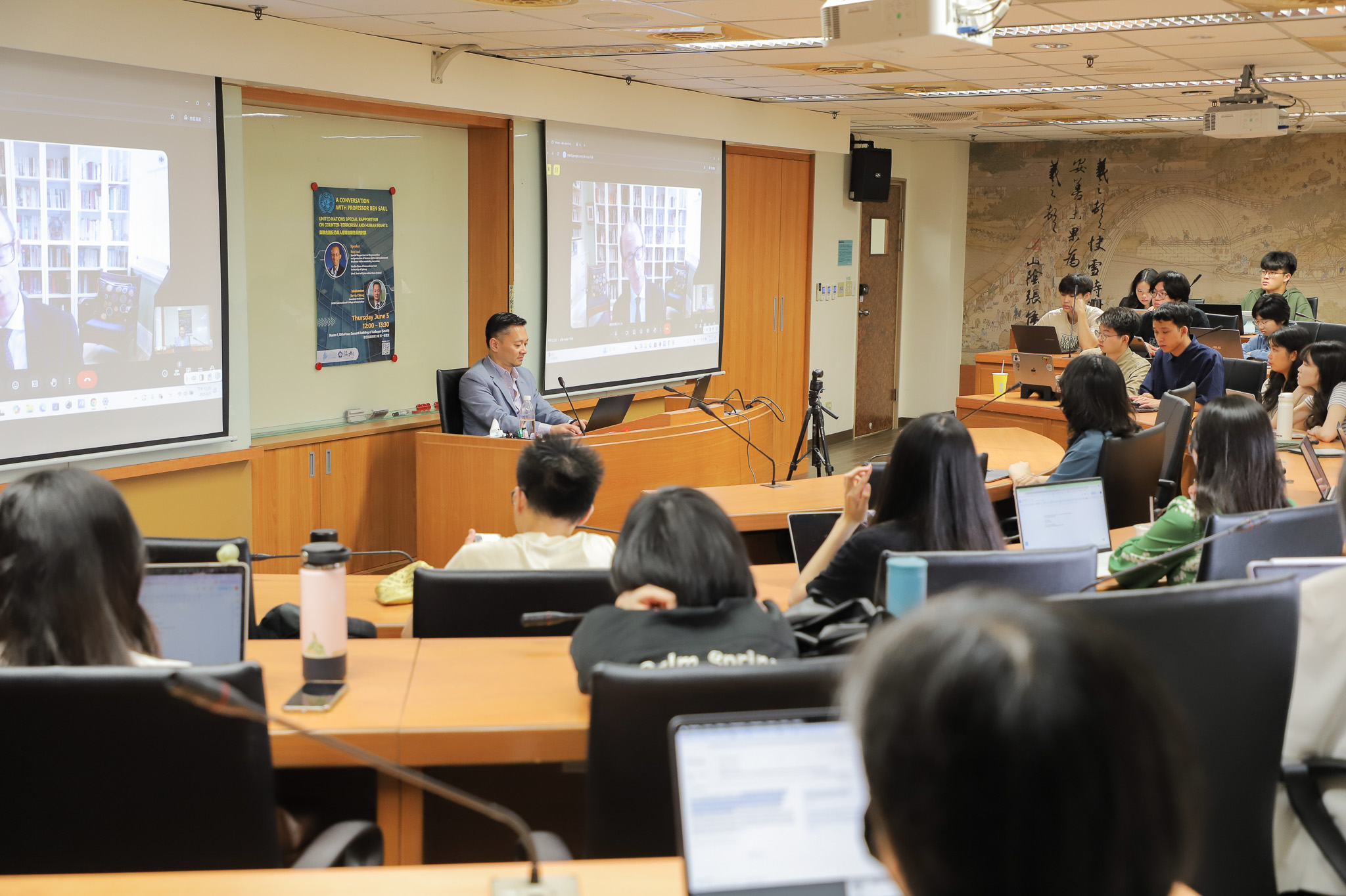 本場講座由創新國際學院張佳康副教授擔任主持人,引導整場對談與提問環節。(圖片來源:創新國際學院)
