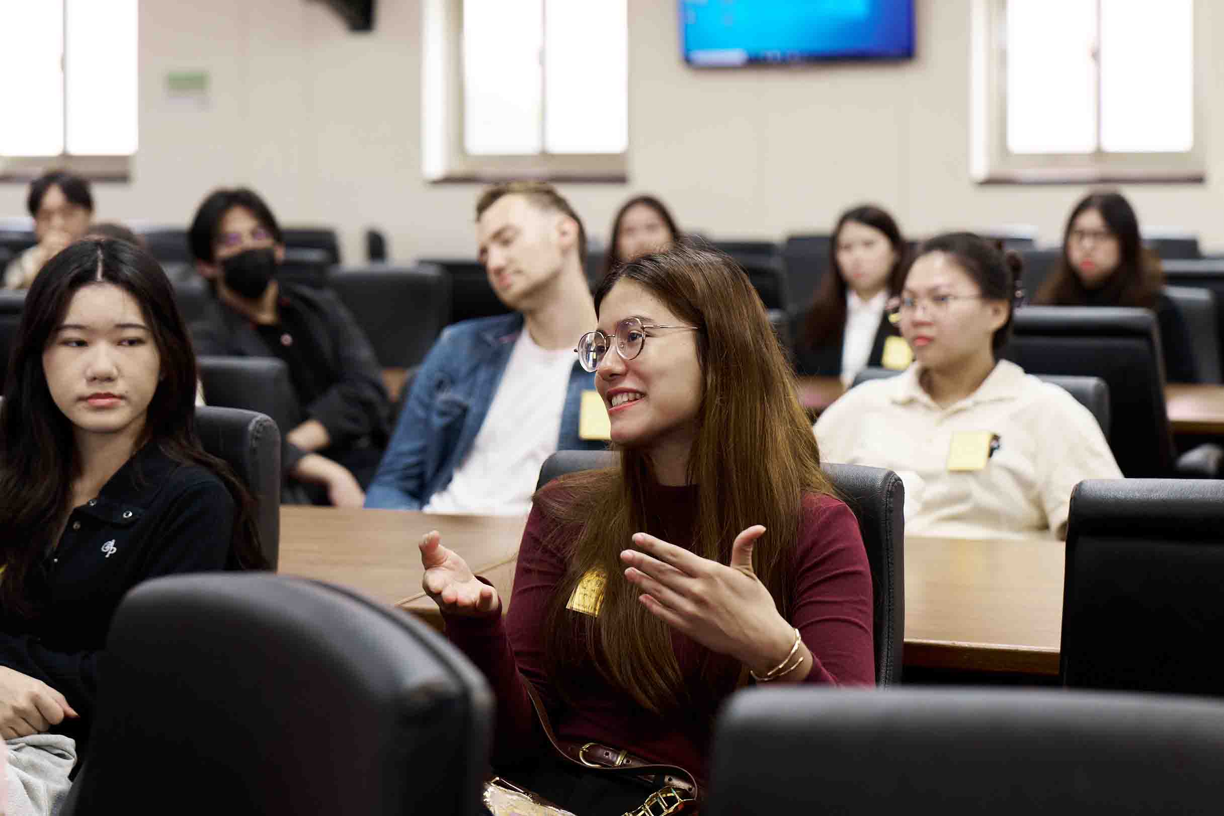 參與本次課程的學生來自聖露西亞、海地、巴拉圭等台灣邦交國,以及多個東南亞與歐美國家。透過與委員直接互動,學生提出多項關於國會透明度、數位化、議長中立性,以及 AI 法案範圍等深度提問,展現出跨文化視角與公共政策的探究精神。