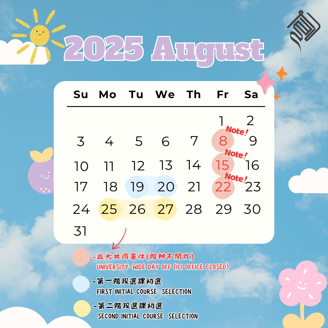 祝大家暑假愉快,休息之餘也別忘了準時選課喔!